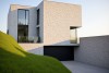Een zwart vlak snijdt in de woning en begeleidt de bezoeker, via de buitentrap, naar de inkomdeur. De ruime woning kenmerkt zich door licht en ruimte en richt zich volledig naar de tuinzijde en het achterliggende bos.