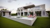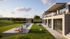 Op het laggerliggende tuinniveau bevinden zich de slaapkamers, het zwembad met poolhouse en sauna.
