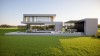 Een trappenpartij geeft toegang tot de royale inkomhal met doorzicht naar het achterliggende landschap.